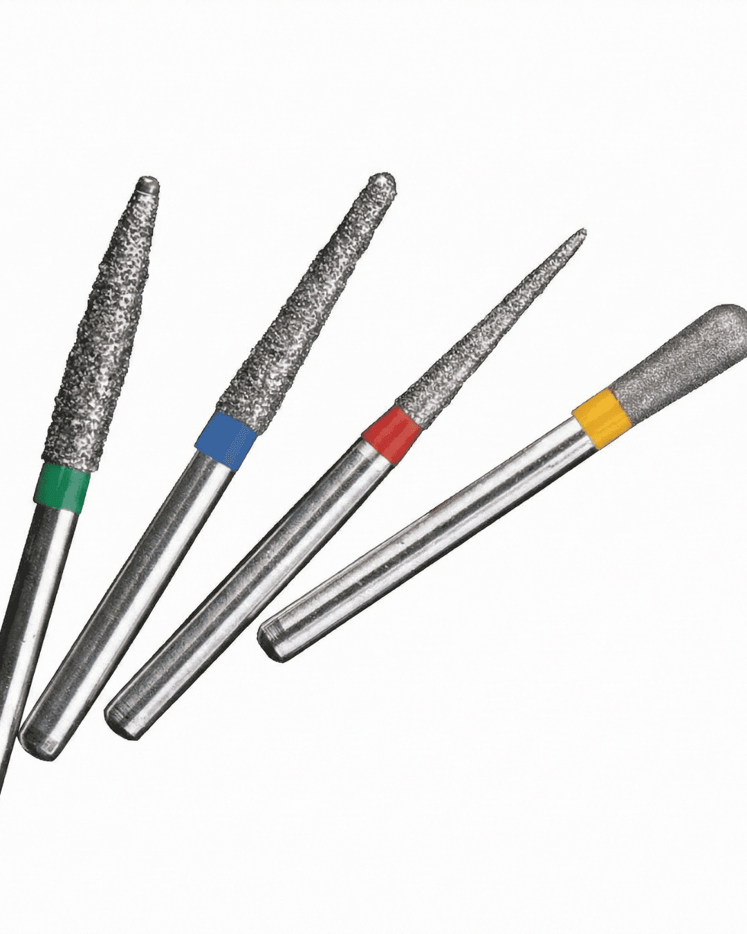 • ISO-Standard Grit Coding: Our burs follow strict ISO color-coding for grit size, allowing clinicians to confidently select the right aggressiveness for each stage of preparation—from coarse for bulk reduction to fine for finishing the margin.