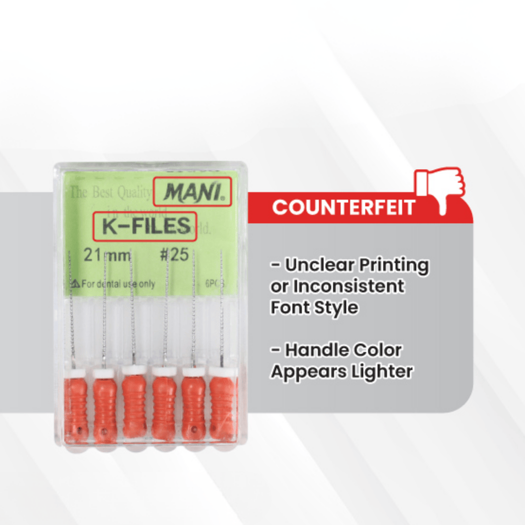 Maintaining high standards of care requires vigilance against counterfeit instruments. By familiarizing yourself with these identification protocols, you safeguard both your clinical outcomes and patient safety. Always insist on genuine MANI Files—precision-engineered for trust, reliability, and excellence in endodontic practice.